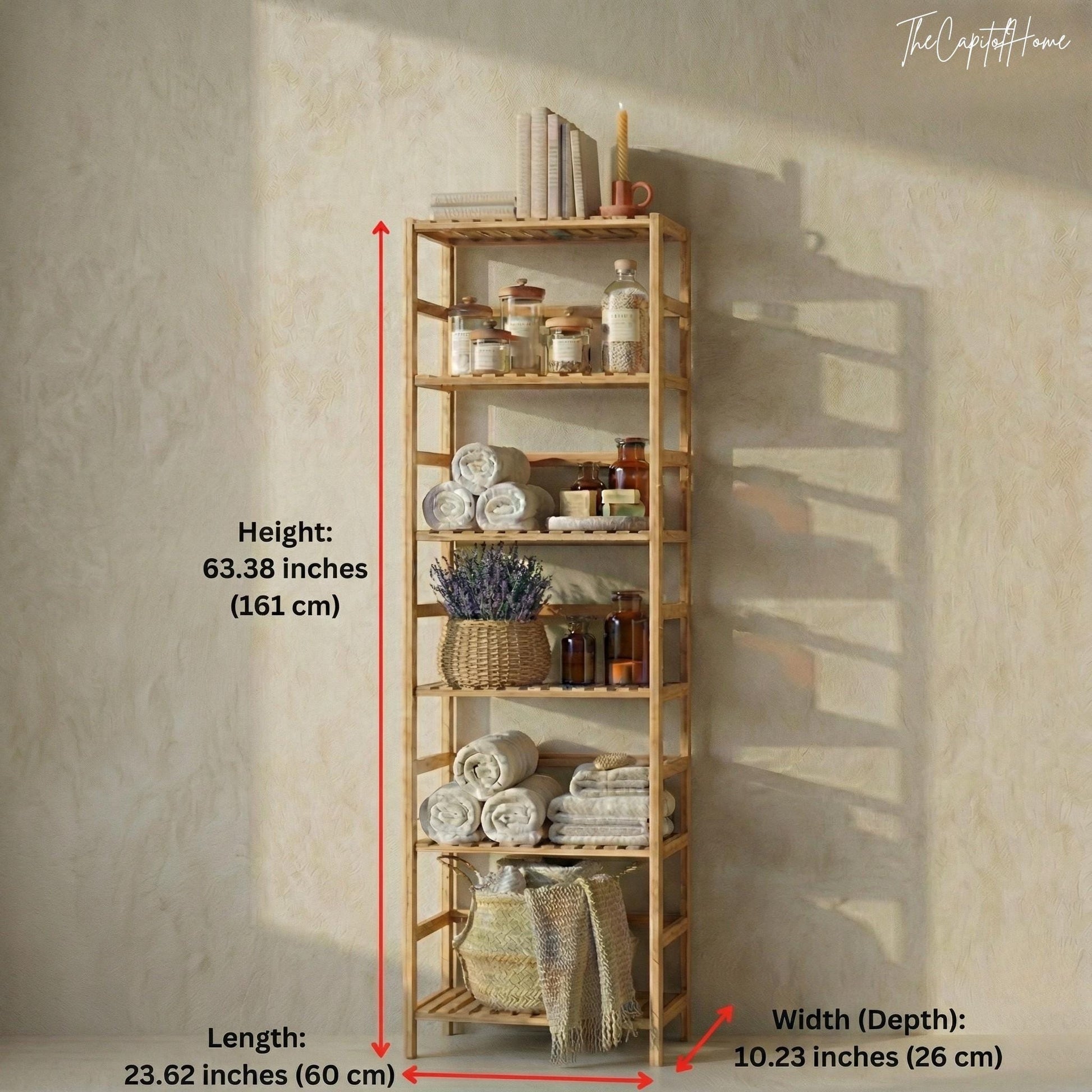 Bamboo 6-Tier Bathroom & Kitchen Storage Shelf – Freestanding Organizer Rack